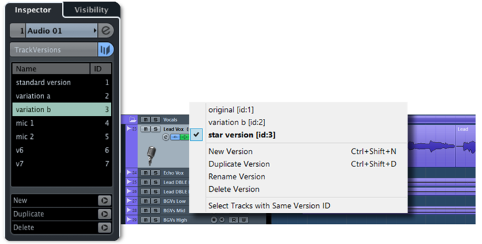 録音テイクはもちろん、様々な編集バージョンをトラックの設定を維持したまま切り替えが出来るというものです。
