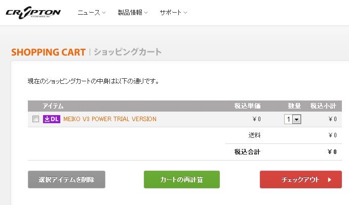 こちらのリンクから、『MEIKO V3 POWER TRIAL VERSION』を0円でカートに入れて清算しょう。